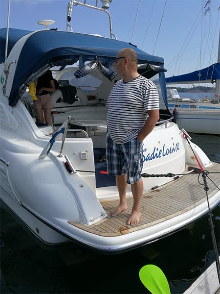 Aikanaan aloitimme soutuveneellä mökkirannasta käsin ja sillä kalastellen. Myöhemmin on tullut kokeiltua keskimoottoriveneitä ja hart top mallia kunnes retket pitenivät ja hankittiin asuttava matkavene, joita on ollut muutamia. Edellinen veneemme oli niin sanottu flaikkari yläohjaamolla jota myös vuokrattiin kulujen peittämiseksi. Itsellä tulee kunnolla huolehdittua omasta veneestä, koska asiakkaalle sen mielellään luovuttaa aina siistinä. Virallinen trafin vuokravene-katsastuskin meni kerralla läpi, koska kaikki tarpeelliset turvavarusteet oli jo ennakkoon hankittu. Asiakkaat ovat tykänneet kovasti tästä nykyisestä Birchwood 370 Sport Commando veneestä. Siinä on kaikki tarpeelliset varusteet ja ruhtinaalliset avotilat ja tilava uimataso. Lisäksi vene on helppo käsitellä kahdella moottorilla ja keulapotkurilla.